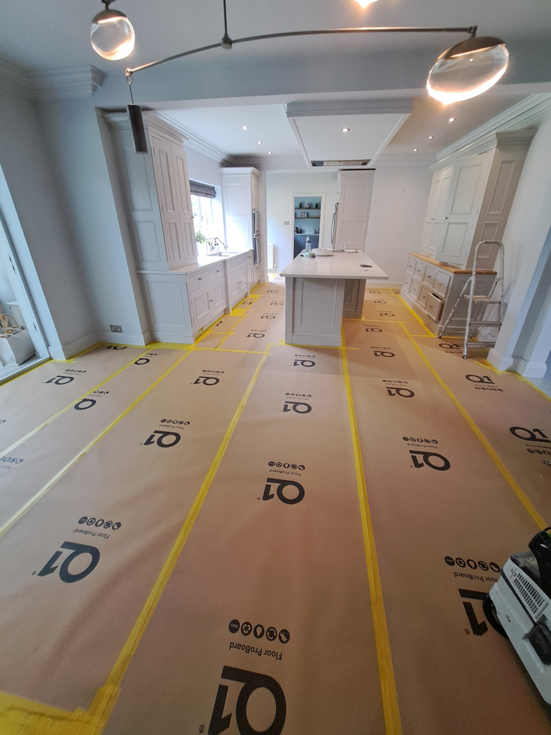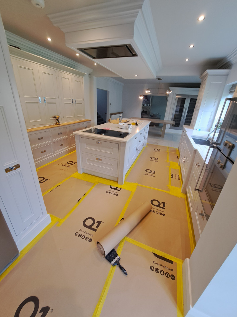 A kitchen recently finished in Knutsford. All kitchen doors thoroughly cleaned and sanded in preparation for a very durable specialist kitchen paint to be sprayed on. A truly flawless finish.